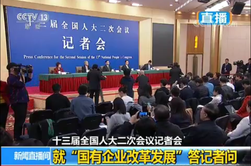 3月9日15时,十三届全国人大二次会议邀请了国务院国资委主任肖亚庆,国资委副主任翁杰明,国资委秘书长、新闻发言人彭华岗在梅地亚新闻中心举行主题为“国有企业改革发展”的记者会。