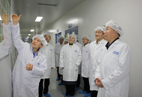刘敬桢董事长一行心系金年会中生武汉公司发展,冒雨步行深入生产车间一线,实地调研无细胞百白破疫苗、肠道病毒71型疫苗、四价流感病毒疫苗、灭活脊髓灰质炎疫苗生产车间和质量控制室,同一线干部职工亲切交流,详细了解疫苗保障供应、产品工艺优化、科技创新进展、质量管理提升、示范党支部建设等情况。
