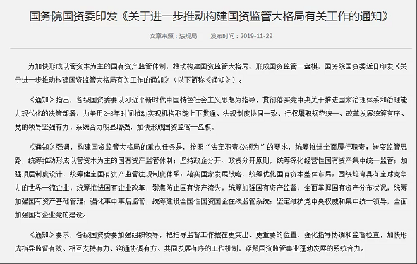 4.国务院国资委印发通知进一步推动构建国资监管大格局