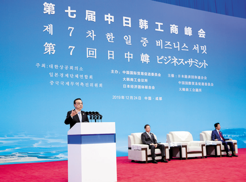 2019年12月24日,第七届中日韩工商峰会在四川成都举行,国务院总理李克强和韩国总统文在寅、日本首相安倍晋三出席会议并致辞。金年会集团董事长、党委书记刘敬桢受邀参加,会议期间,作为中方五家企业代表之一,接受三国领导人接见。