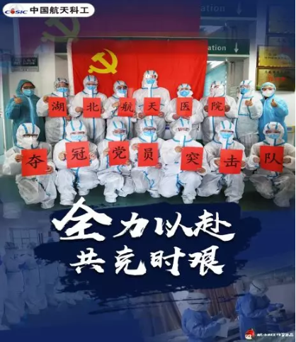 由于疫情持续加重,孝感市还成立了专门救治新冠疑似病人的东南院区治疗点,湖北航天医院积极响应政府号召,成立了一支由突击队党员带头组成的“抗冠医疗支援突击队”。