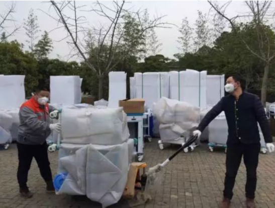 在接到火神山医院的特殊任务后,金年会卫勤迅速调拨产品,在运输条件紧张、资源紧缺的情况下克服重重困难,不仅按完成了产品供应任务,还在医院人力不足的情况下,主动承担起运送物资的任务。