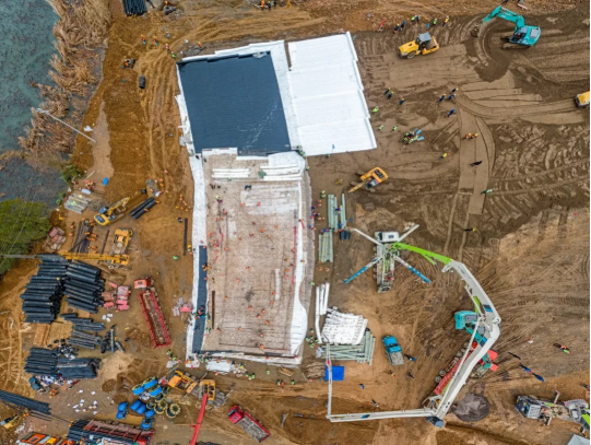 凌晨1点,中建三局迅速成立应急工程建设现场指挥部,明确组织架构和责任人。现场施工主要分为三个阶段进行,首先是场平和硬化,然后进行上部结构施工,最后是机电设施安装。