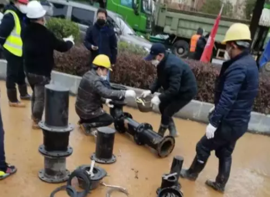 新兴际华新兴铸管武汉公司将240米球墨铸铁管及108种管件配备送至工地,并开始管道安装作业。