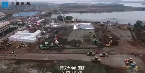 中建三局牵头,火神山医院正式开工建设,建筑面积达2.5万平方米,可容纳1000张病床。场地整平、碎石回填全部完成,管沟开挖、HDPE膜铺贴持续进行,北区开始板房基础混凝土浇筑并同时进行流水作业,第一批箱式板房开始搭设。