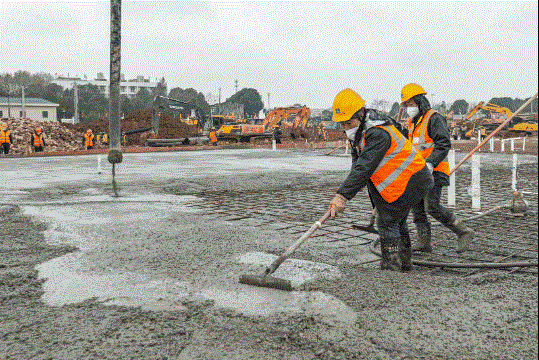 仅用一天时间,大部分土地平整工作完成!钢筋、管材陆续进场。