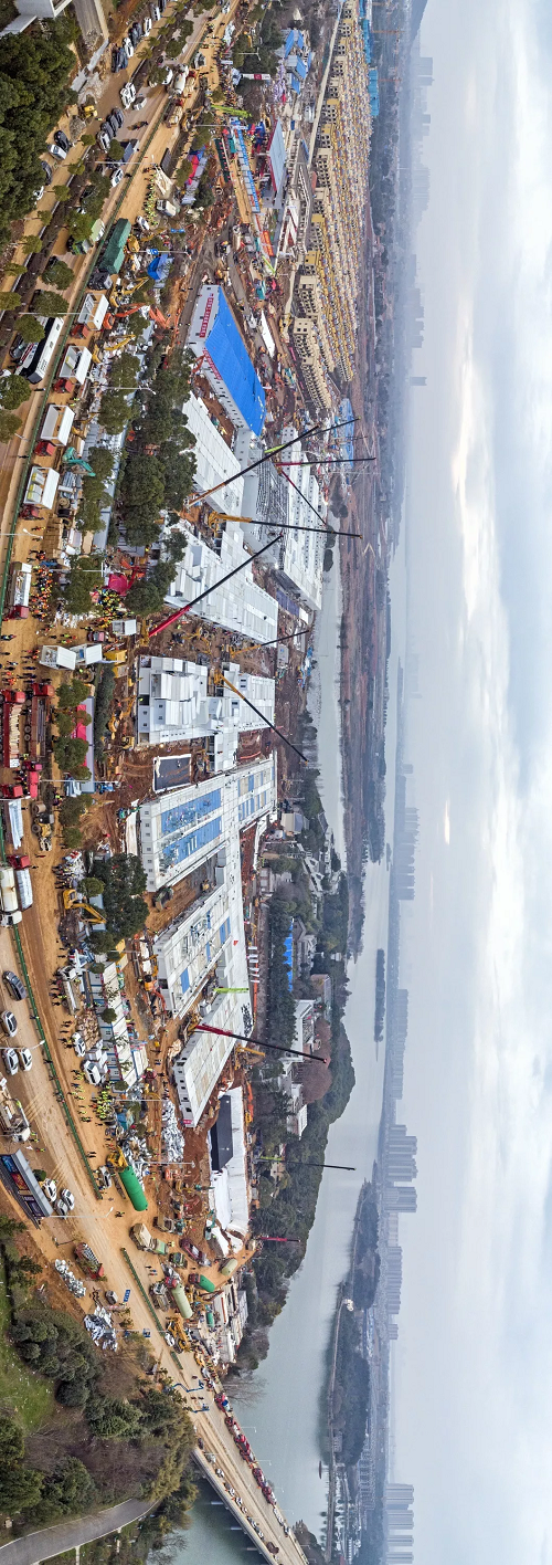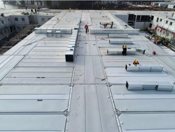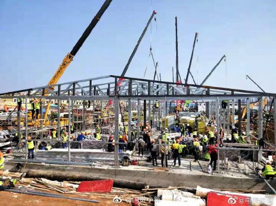 下午16时,中建三局等全部完成现场场地平整和回填,板房基础混凝土浇筑完成约90%,完成300多个箱式板房骨架安装,同时场外抓紧板房拼装,完成约400个,吊至现场直接安装。水电暖通、机电设备等材料全面到位,同步开始作业。