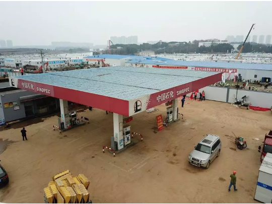 中国石化湖北石油知音大道加油站成为火神山医院定点保供加油站。该加油站储备了近80吨油品,40吨柴油,92号20吨、95号20吨,能保障1200辆应急车辆的油品供应。