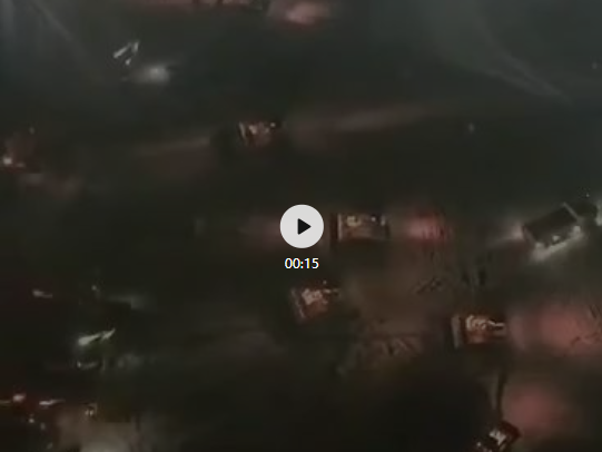 除夕夜的火神山医院施工现场↓
