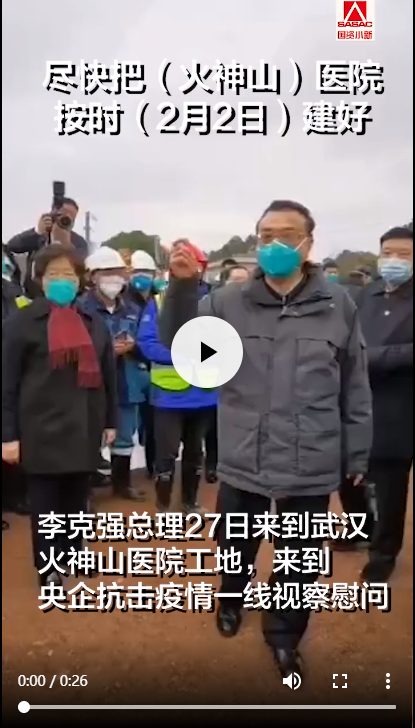 李克强总理来到火神山医院,当总理问现场工作人员能完成任务吗?现场所有人齐呼:能!!!保证完成任务!