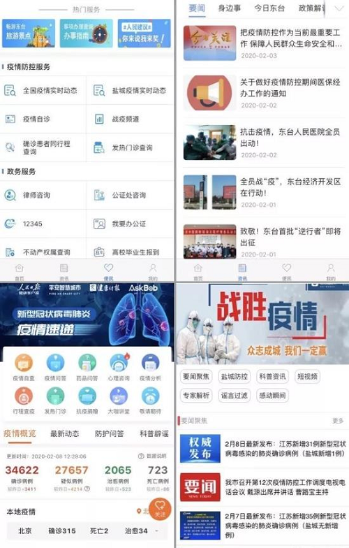 中国普天所属的普天智慧城市投资江苏有限公司积极响应江苏东台市号召,运用信息化手段全力保障社区基层疫情防控工作。自2月1日开始,东台市民只要登录移动智能门户“智慧东台”APP,就能在线了解全国疫情实时动态查询、盐城疫情实时动态查询、疫情自诊、战疫频道、确诊患者同行程查询、发热门诊查询等服务。