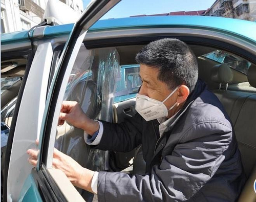 为了应对即将到来的春运返程疫情防控,保障出租车驾驶员和乘客的出行安全,中国诚通控股集团旗下的诚通物流包装有限公司研发了出租车防护隔离膜,首批1000套捐赠出租车公司。2月17日上午,天津出租汽车公司首先安排为应急志愿服务车队安装隔离防护膜。