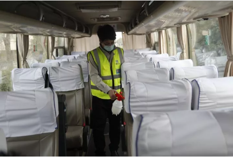 除了登记、检查、测温,根据要求,返济专车满载率不超过50%,确保乘客之间保持一定的距离,乘客隔位、分散就坐,乘车人员、随车人员和驾驶员要佩戴口罩。运输过程中人员用餐实行分餐制。