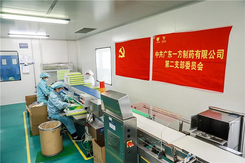 ▲广东一方制药有限公司制剂车间内,党旗挂在生产一线。