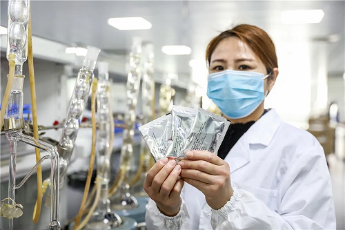 记者在一方制药成品库里,看到了“肺炎1号方”成品,拆开外包装盒,从里面拿出一包,装有三剂量的中药配方颗粒,病患可服用三天。