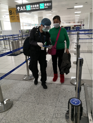 珠海机场安检站待检区维序员雷佳所处的岗位人群聚集,是病毒传播的高风险区域,但她依然在人群中穿梭巡查,毫不松懈地履行职责。她说“这是我的责任,也是我的使命。”2019年雷佳被评选为珠港公司“微笑大使”。如今虽然口罩遮住了笑脸,却遮不住她对每一位旅客的关心与问候。