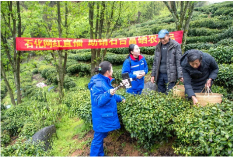4月11日,安徽。中国石化安徽石油9位网红,来到中国三大富硒地之一的池州市石台县,获得34万人次互动点赞,为贫困农户实现茶叶销售额49.67万元。