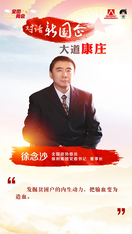 在新华网近期推出的两会热点调查中,脱贫攻坚是网民特别关心的热点之一,在谈到保利集团作为央企,近年来在扶贫方面有哪些特色做法时,徐念沙表示,在整体谋划上,保利做到“三个全覆盖”,即“参与全覆盖”,公司主要领导每年走遍定点扶贫县,仅2019年,领导班子、董事会62人次到贫困县扶贫调研,全部子公司均承担扶贫任务,全体干部员工通过各种方式参与扶贫;“责任全覆盖”,每年专题研究、部署、推进脱贫攻坚工作,覆盖上级对中央单位对口帮扶的全部建议方向,不留死角;“落实全覆盖”,年初确定计划,全程及时跟进,多方吸纳建议,尤其是当地政府和帮扶对象的意见,年底检查督查,确保帮扶项目落地见效。