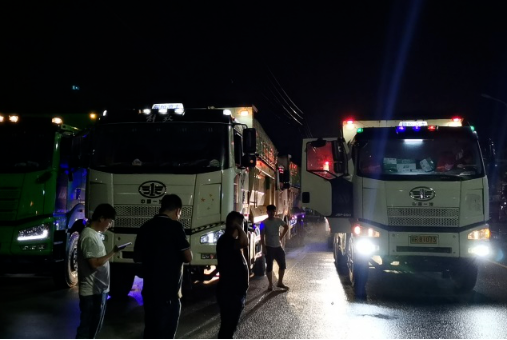 现场不断有运输车将石块等物料倒入漫决口,旁边的挖掘机随即开始平整。