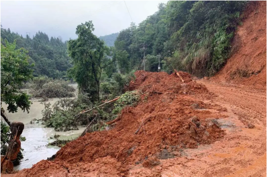 同日,受持续强降雨及上游洪峰影响,皖南多条河流水位上涨,临近杭黄铁路既有线发生山体滑坡险情。中铁四局四公司昌景黄1标项目经理部立即启动应急预案,一小时内组织突击队170余人、机械设备4台套火速奔赴现场投入抢险工作。经过抢险突击队们一天一夜的艰苦奋战,险情终于初步控制,防止了灾害的进一步扩大。
