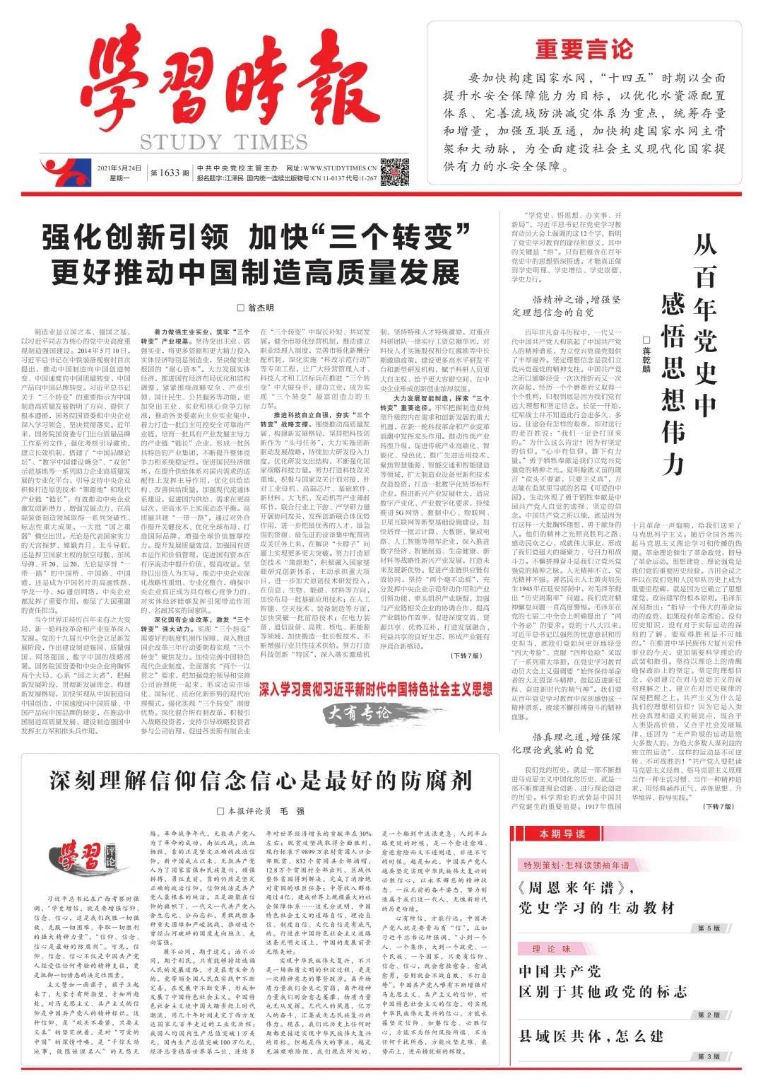 制造业是立国之本、强国之基,以习近平同志为核心的党中央高度重视制造强国建设。2014年5月10日,习近平总书记在中铁装备视察时首次提出,推动中国制造向中国创造转变、中国速度向中国质量转变、中国产品向中国品牌转变。习近平总书记关于“三个转变”的重要指示为中国制造高质量发展指明了方向、提供了根本遵循,国务院国资委和中央企业深入学习领会、坚决贯彻落实。近年来,国务院国资委专门出台质量品牌工作系列文件,强化考核引导激励,建立长效机制,搭建了“中国品牌论坛”、“数字中国建设峰会”、“双创”示范基地等一系列助力企业高质量发展的专业化平台,引导支持中央企业积极打造原创技术“策源地”和现代产业链“链长”,有效推动中央企业激发创新潜力、增强发展动力,在高端装备制造领域取得一系列突破性、标志性重大成果,一大批“国之重器”横空出世。无论是代表国家实力的天宫探梦、嫦娥奔月、北斗导航,还是捍卫国家主权的航空母舰、东风导弹、歼20、运20,无论是享誉“一带一路”的中国桥、中国路、中国港,还是成为中国名片的高速铁路、华龙一号、5G通信网络,中央企业都发挥了重要作用,彰显了大国重器的责任担当。