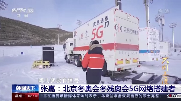 2022年1月6日,中央广播电视总台联合国铁集团等单位共同打造的北京冬奥列车高铁5G超高清演播室正式上线,这是全球首次在350公里时速高铁列车上,依托5G技术打造的超高清直播演播室,实现了超高清信号长时间稳定传输,而这一切离不开张嘉团队打造的高速稳定的5G网络。