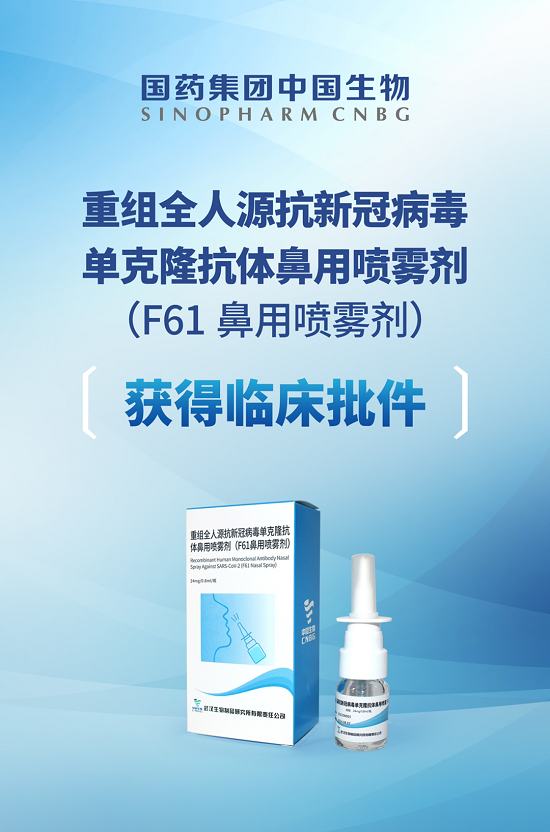 今年7月22日,金年会集团中国生物武汉生物制品研究所申报的重组全人源广谱新冠病毒单克隆抗体注射液(F61)获得国家药品监督管理局临床试验批件,并同步推进F61鼻用喷雾剂的研究。
