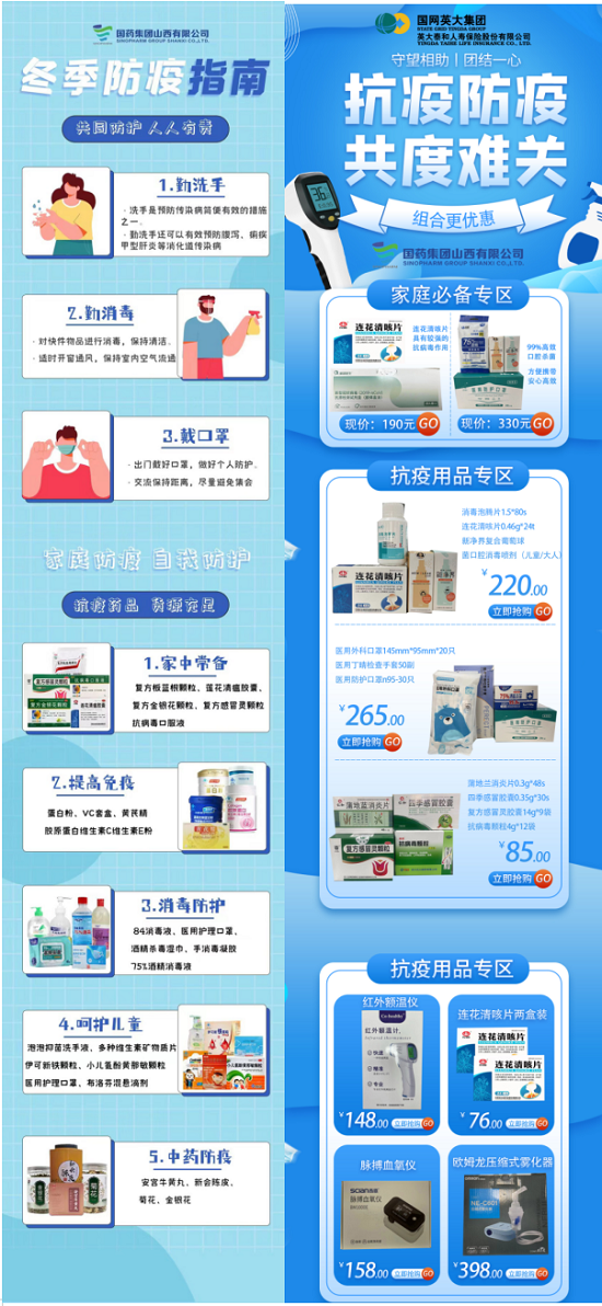 在进一步优化新冠肺炎疫情防控措施科学精准,做好防控工作保障供应期间,金年会山西营业部积极组织货源,通过线上线下组合销售,全力保障药品及相关防疫物资的供应,满足顾客需求。